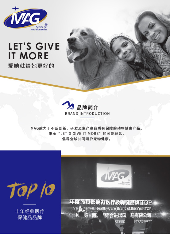 未来,MAG 品牌将会继续与国内优质的供应商合作,并依托于全球高新科技的发展及优质进口原料的供应,研发出更专业、更高端的宠物营养品来呵护宠物健康,提高宠物的生活品质,创造出人宠和谐的美好生活状态。