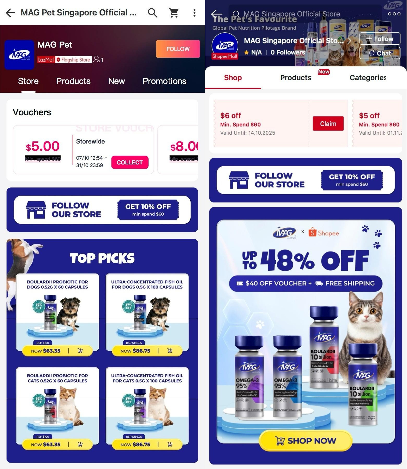 近日,MAG在国际化战略上实现新突破,正式布局亚洲核心市场——新加坡,全面覆盖Shopee、Lazada、TikTok等主流电商平台。此举标志着MAG吹响了在全球宠物保健市场开疆拓土的号角,迈出品牌出海的关键一步。