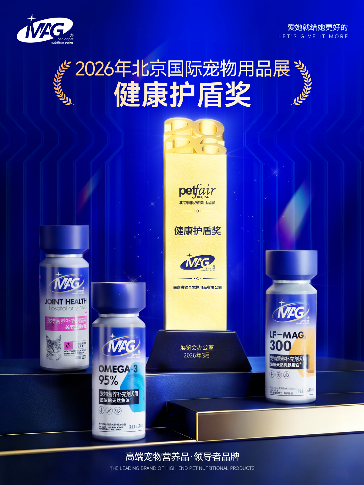 作为宠物营养保健领域的深耕者,MAG在2026年京宠展上再添殊荣——凭借深厚的行业积淀、卓越的产品实力及良好的市场口碑,成功斩获“健康护盾奖”。本次京宠展于3月22日圆满落幕,作为宠物行业年度风向标,展会汇聚全球知名品牌、从业者及爱宠人士,是展现宠物市场活力与创新成果的重要平台。MAG携科技感与亲和力兼具的展台设计、重磅新品矩阵及口碑爆款亮相,现场人流如织、咨询不断,用高人气印证品牌强大号召力,也用实力赢得行业与宠主的双重认可。